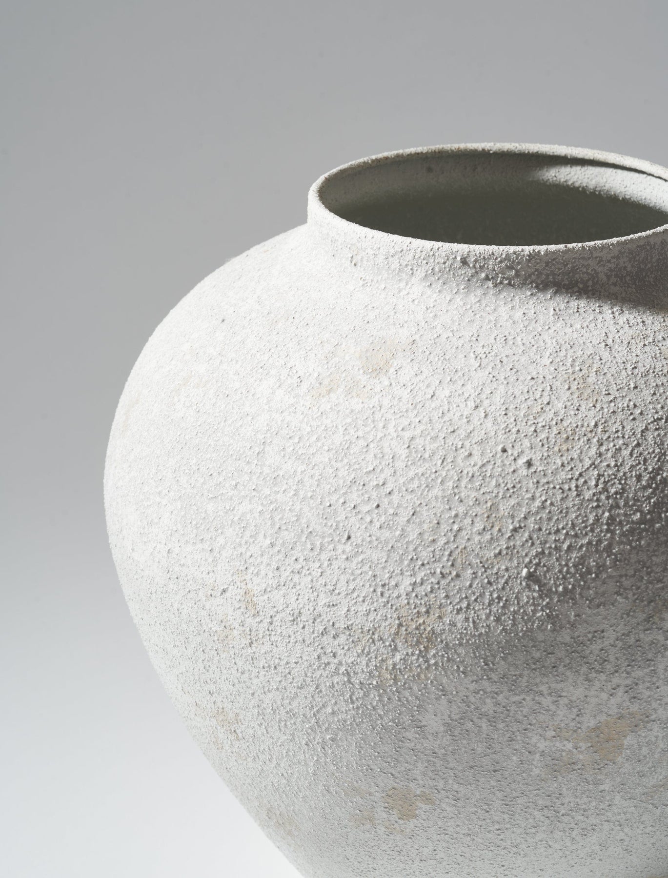 Diese atemberaubende große Eisenvase ist mit einer Steinstruktur versehen. Eine hellgraue/weiße Farbe mit einem Hauch von Taupe verleiht ihr einen schönen Beton/Stein-Look. Mit großzügigen Kurven ist diese Vase ein echtes Statement.
