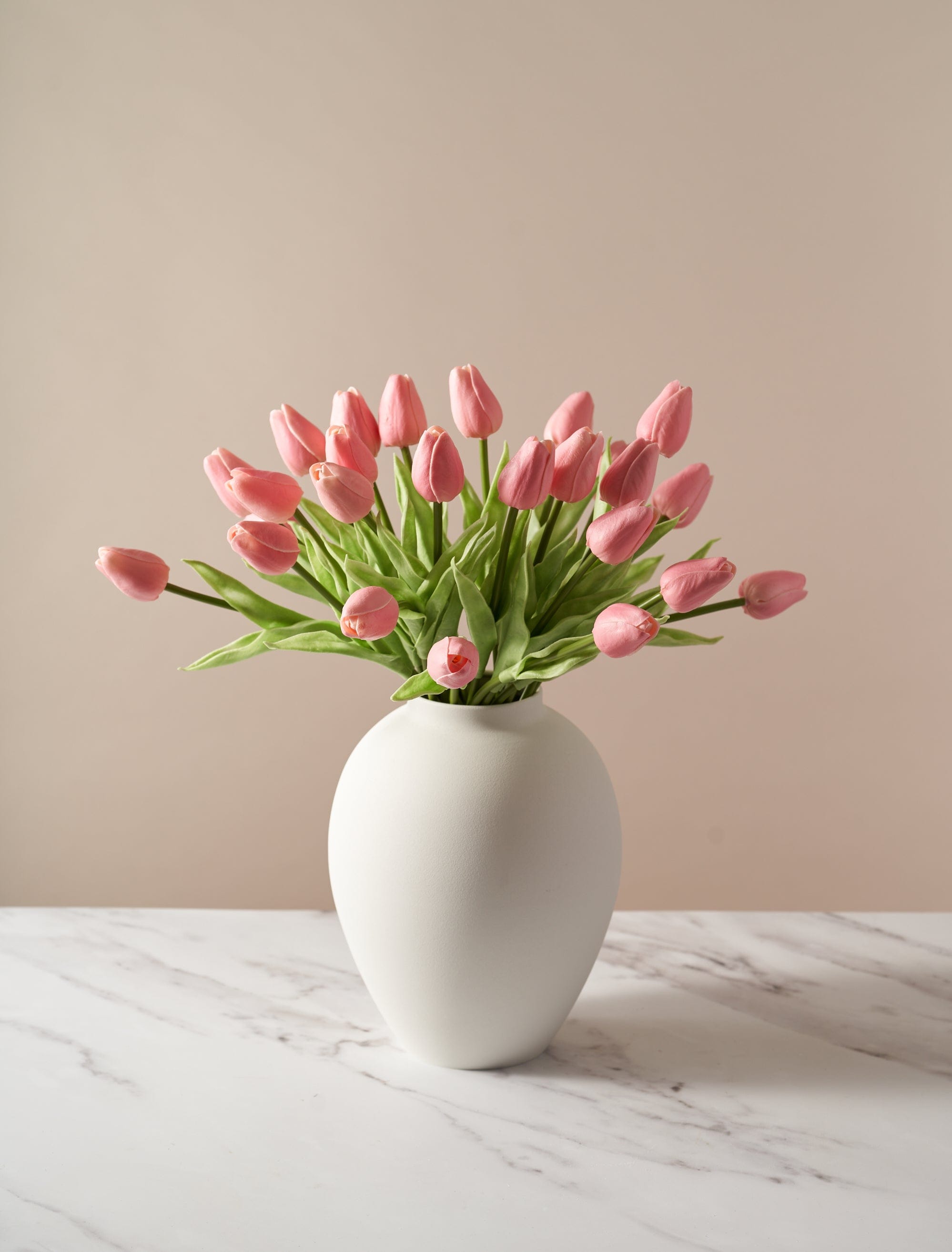 Diese wunderschönen unechten Tulpen sehen genauso aus wie die echten, mit realistischen zweifarbigen Blütenblättern und biegsamen Stielen, mit denen Sie genau die gewünschte Form gestalten können. Diese klassische Tulpe "Pink" ist der schönste Farbklecks für den Frühling.