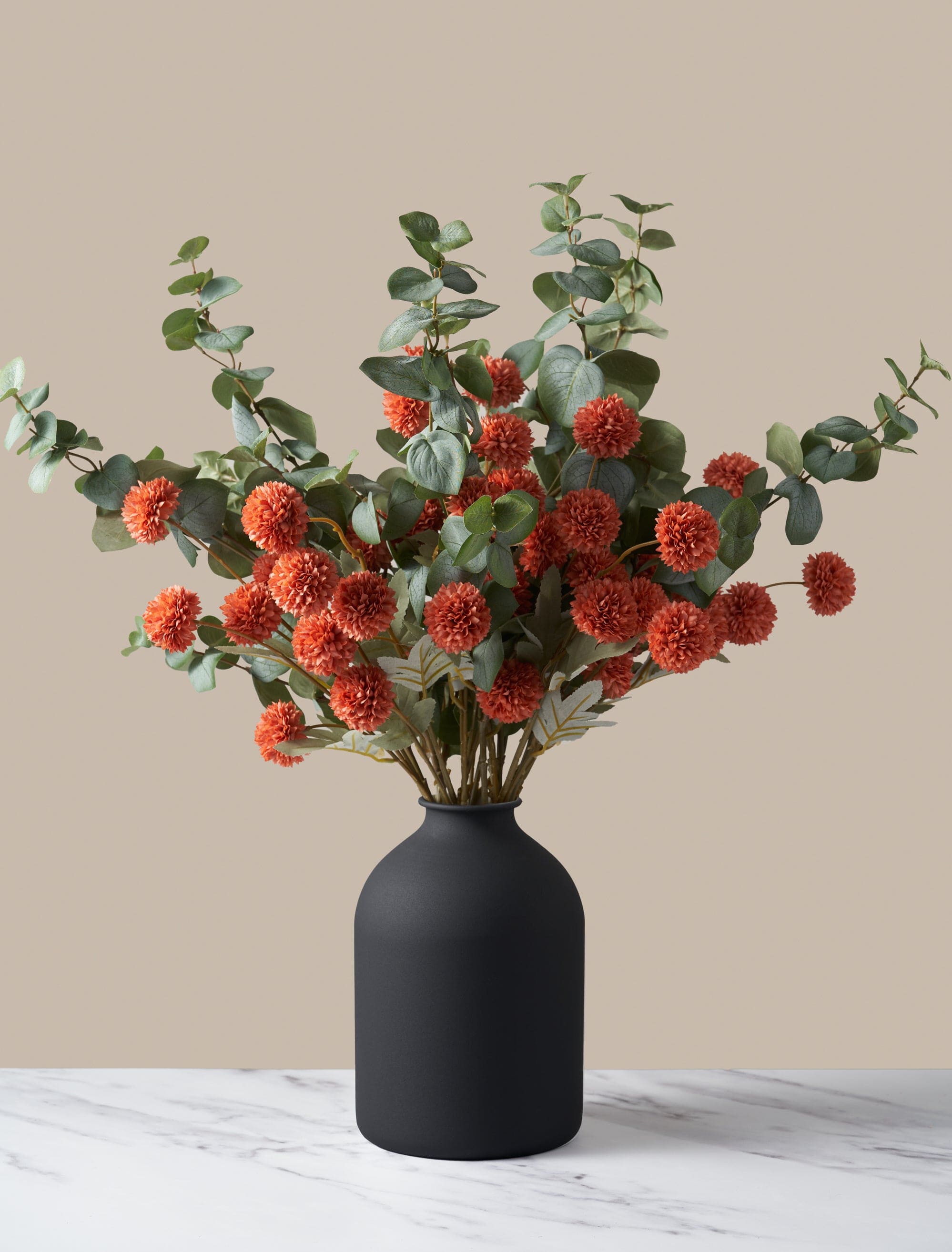 Das perfekte Herbstarrangement: eine Kombination aus unseren Faux Kiku Blumen in Umber und Cinerea Eukalyptus.