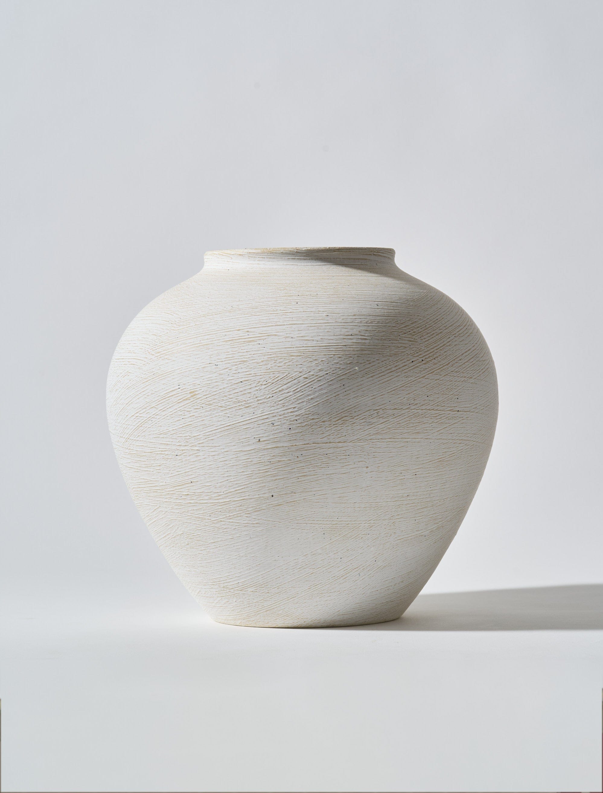 Diese beeindruckende große Eisenvase hat eine sanft gebürstete weiße Oberfläche, die ihr eine subtile, verwitterte Eleganz verleiht. Die hellen, luftigen Töne mischen Schichten von Weiß mit sanften Andeutungen von natürlichen Untertönen und verleihen ihr einen zeitlosen, handwerklichen Reiz. Mit ihren großzügigen Kurven und ihrer glatten Silhouette ist sie ein echtes Statement - perfekt, um jedem Interieur einen raffinierten Charme zu verleihen.