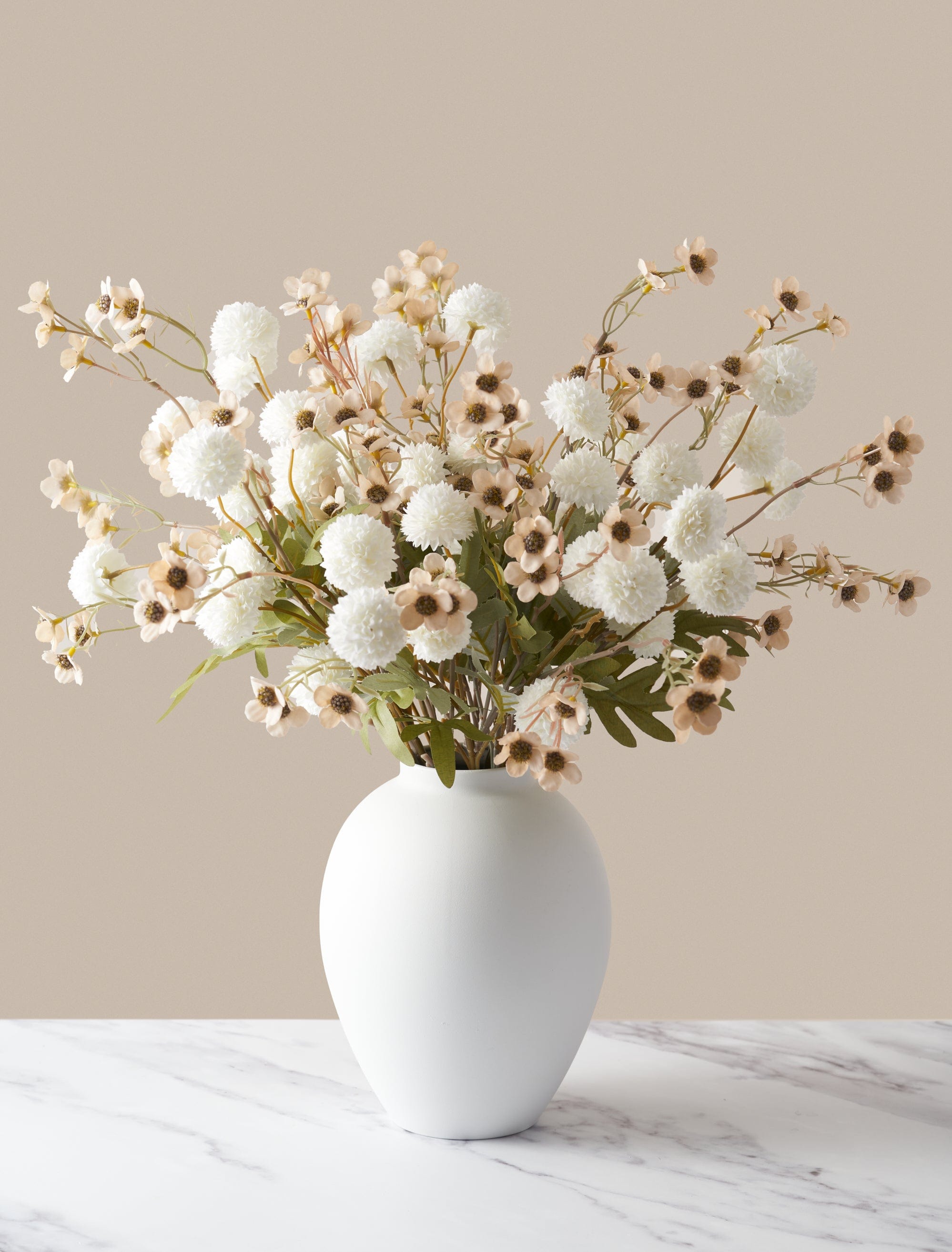 This faux flower arrangement pairs perfectly with our Ella Vase as pictured.