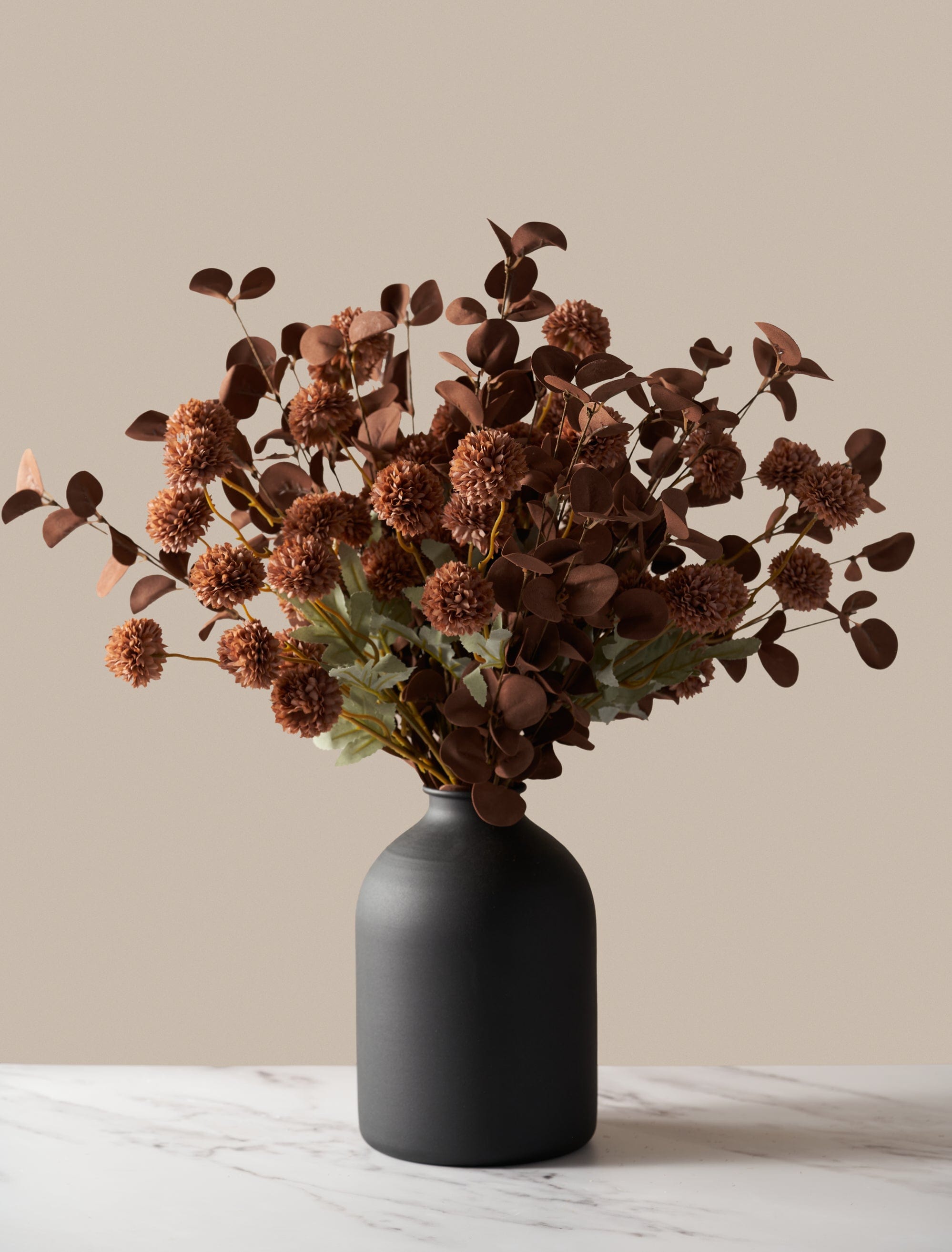 Dit Faux Arrangement bevat een mix van onze Faux Kiku Bloem in Bruin en Bruine Eucalyptus voor een gedurfde, luxe uitstraling.