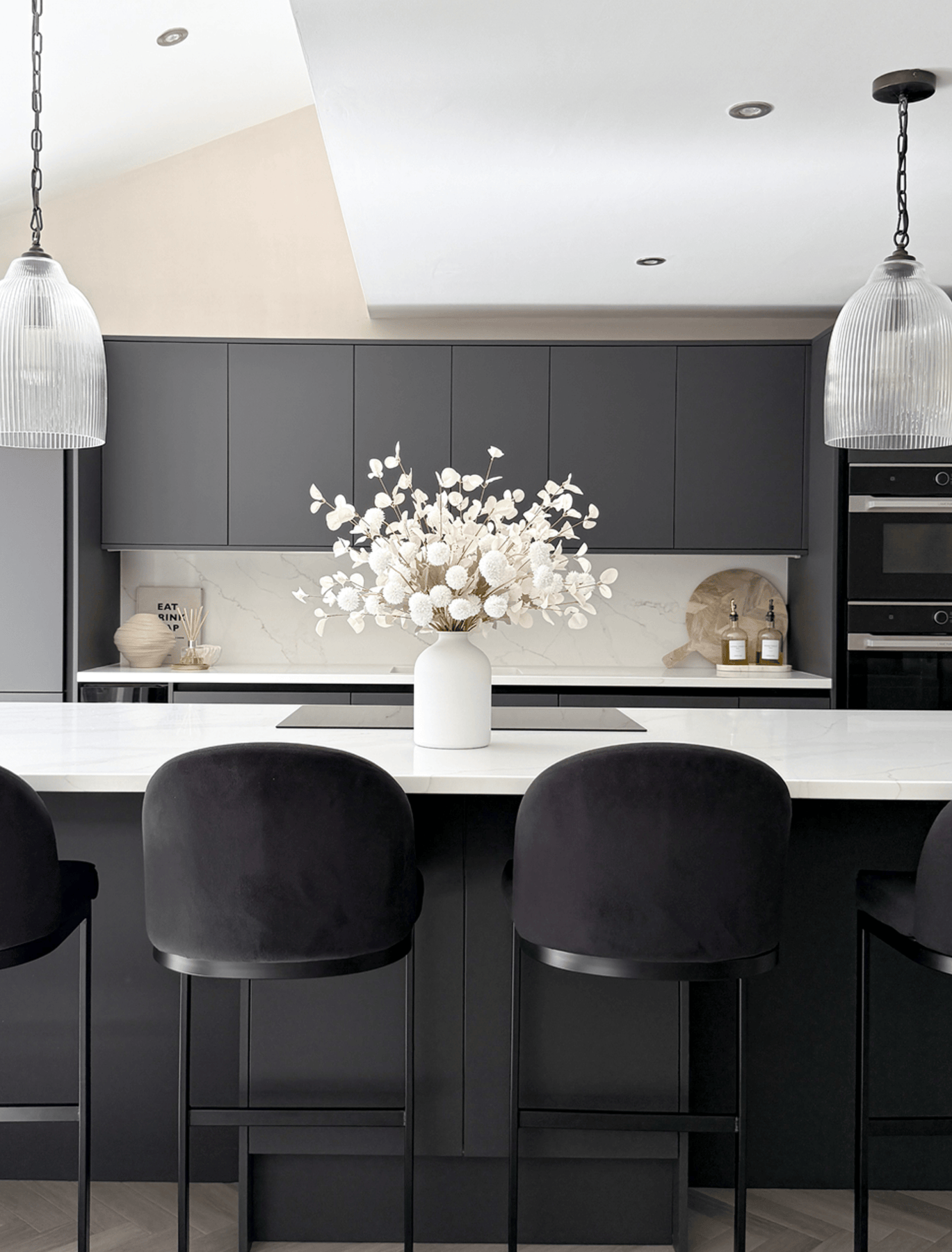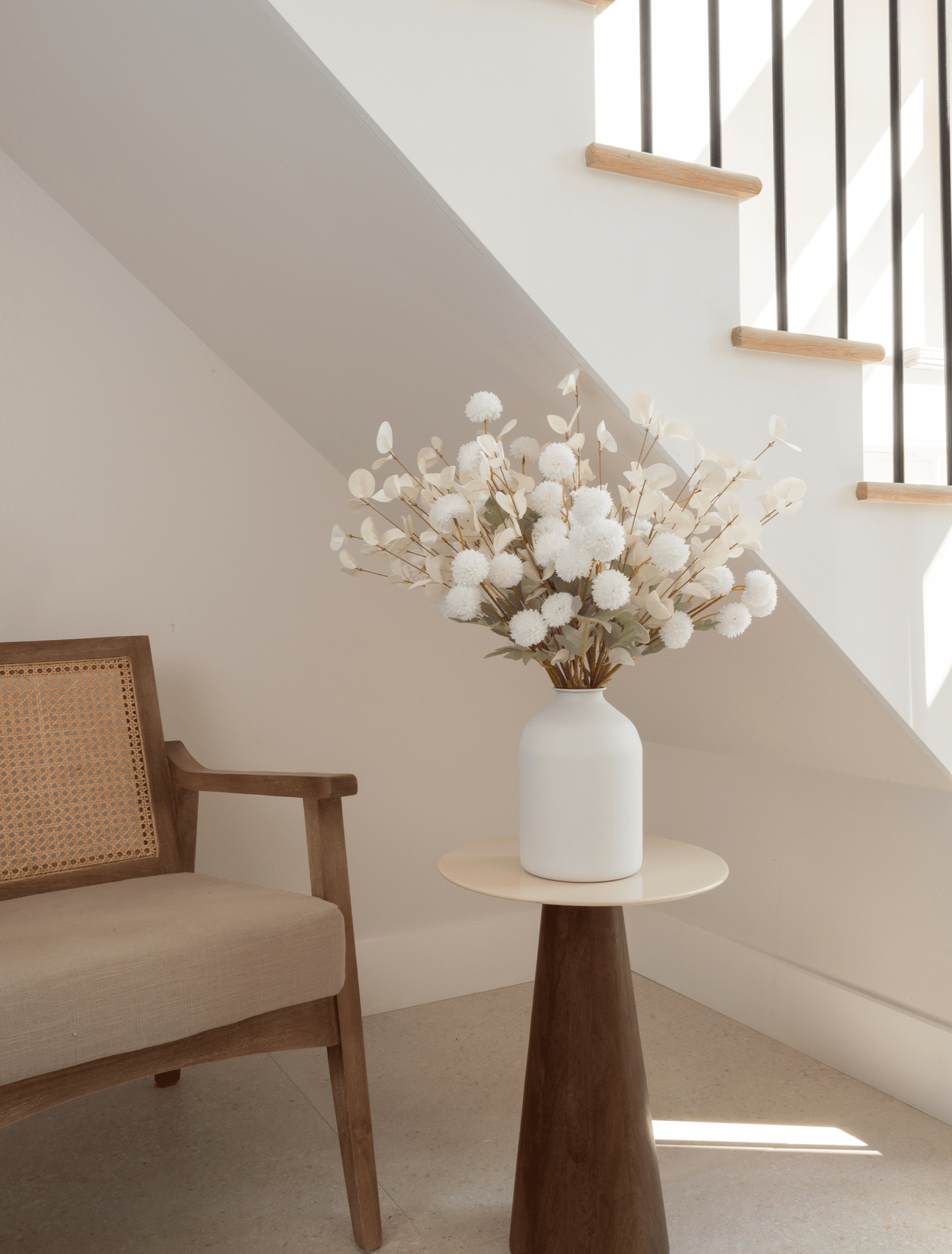 Een rustieke en toch moderne vaas met een prachtige textuur in steenwit. Deze vaas is perfect voor onze faux hortensia.