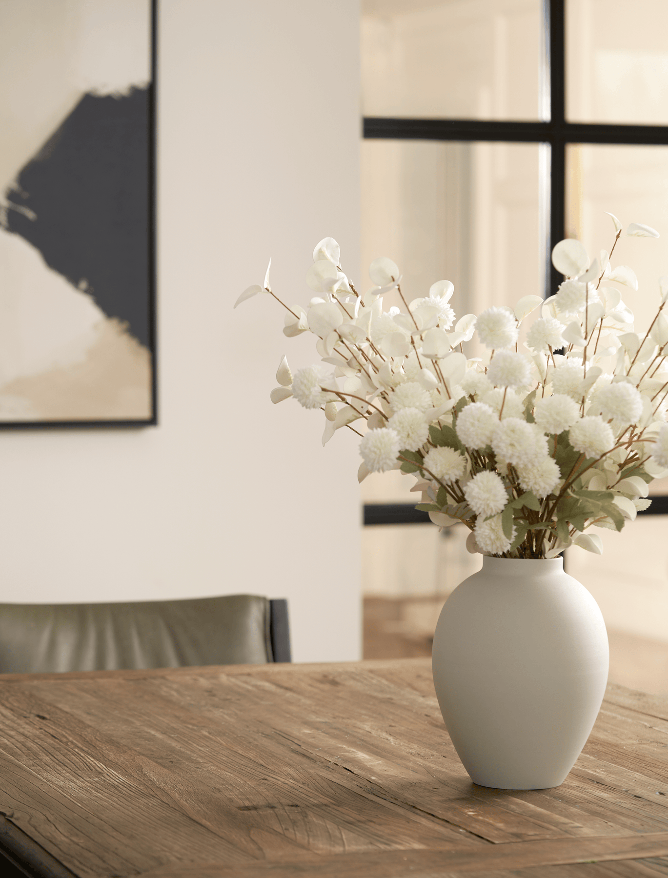 Een prachtige ijzeren vaas met een prachtige vorm die taps toeloopt naar een smallere halsopening. Met een licht getextureerde afwerking combineert deze vaas rustieke en moderne interieurstijlen voor een elegante look.